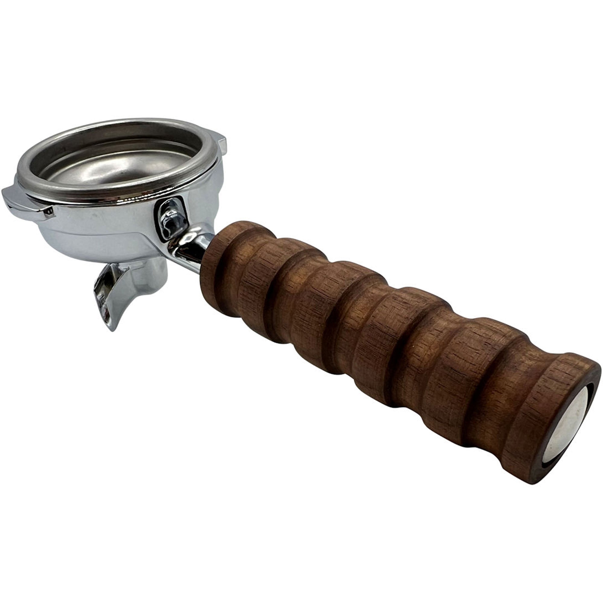 Universal Double Stainless Steel E61 58mm Portafilter Complete - Walnut - 8.5 Gasket