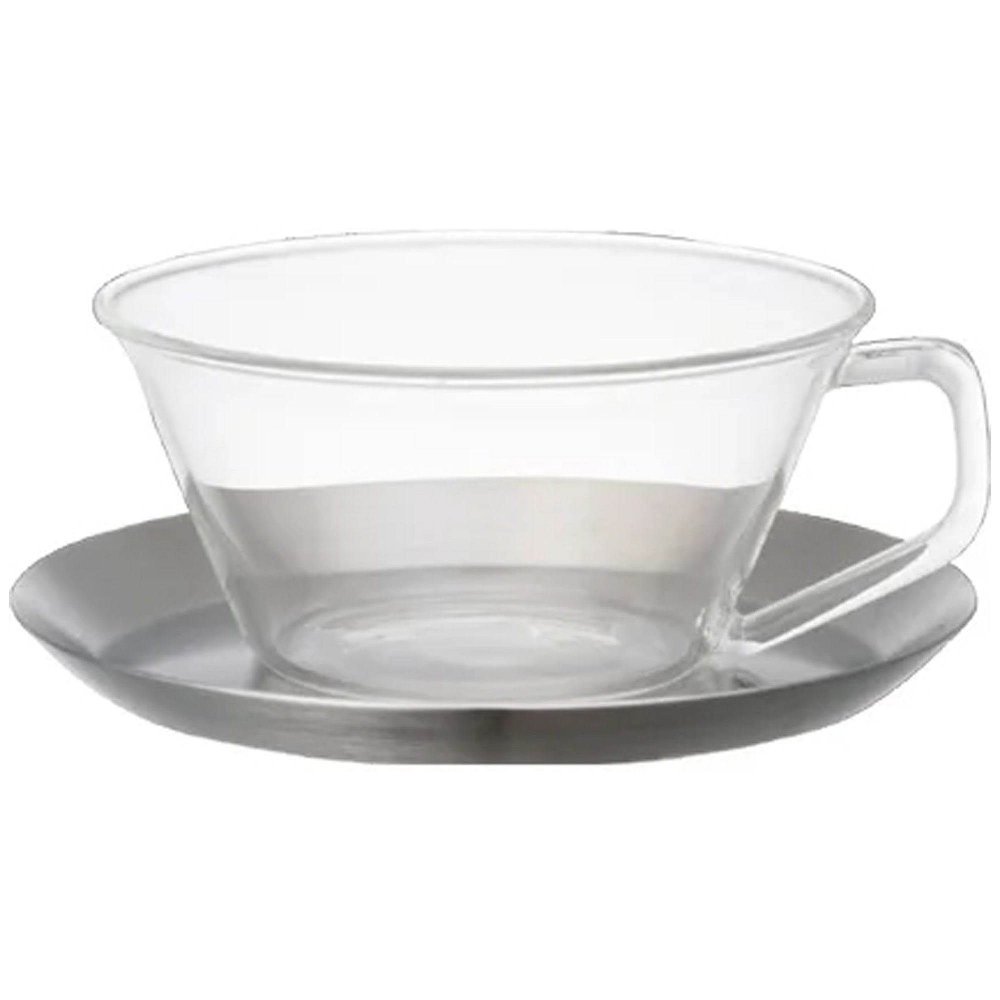 Kinto Cast Glass Coffee Cup and Saucer Stainless Steel - 220ml - 8oz