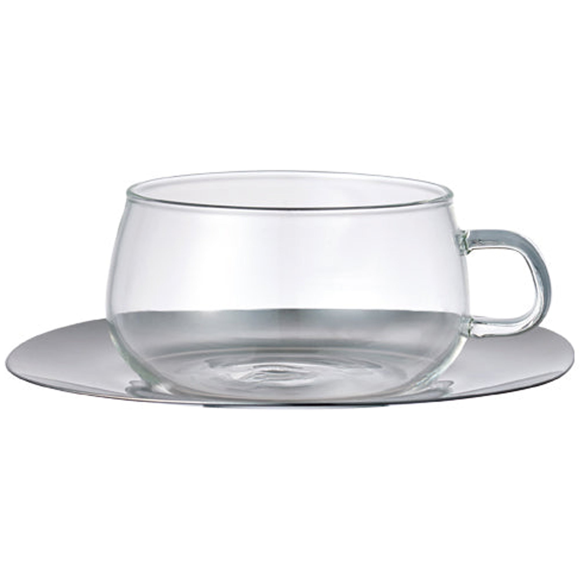 Kinto UNITEA Cup & Saucer 230ml Stainless Steel - Heat-Resistant Glass, Dishwasher Safe