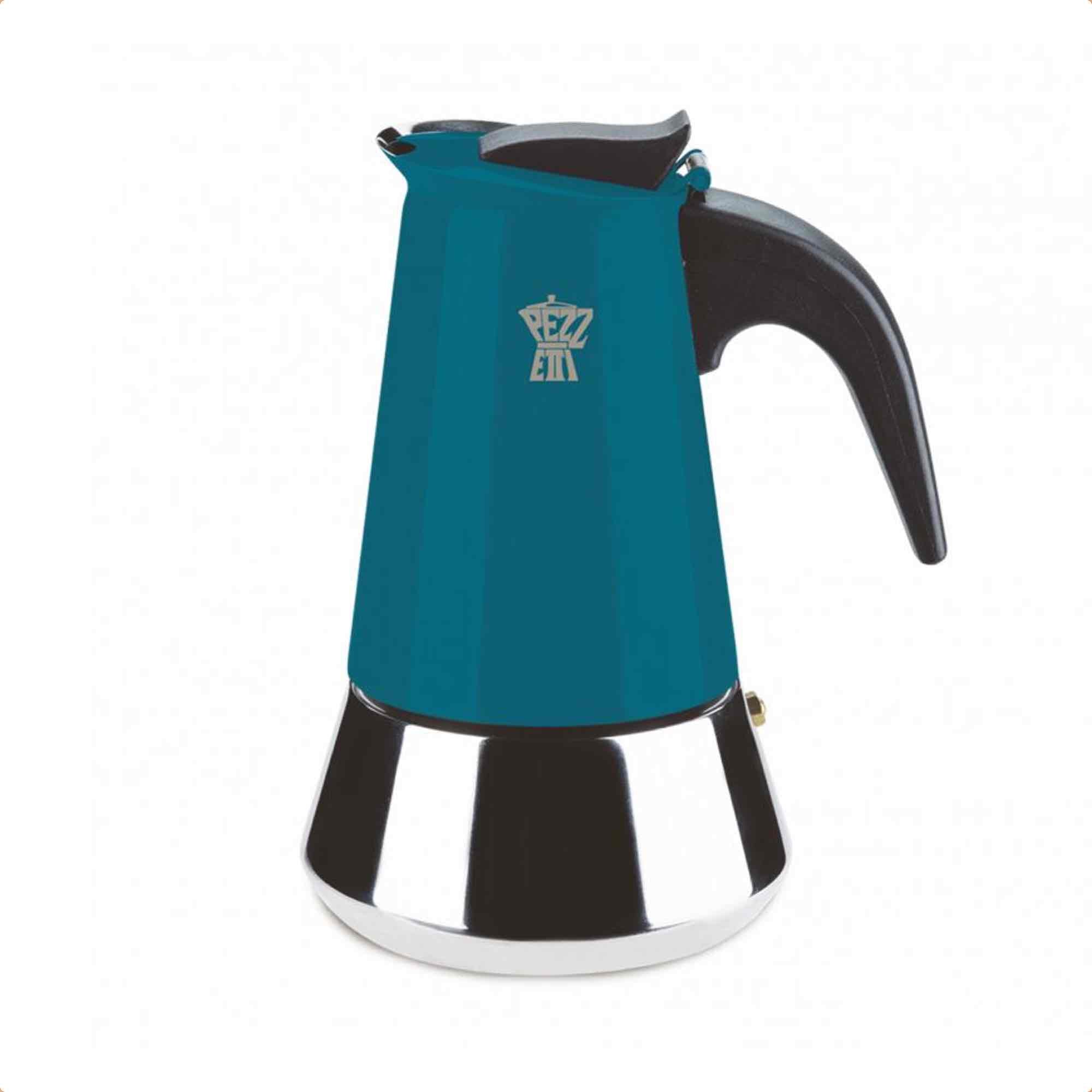 Pezzetti Steelexpress Stove Top Moka Pot - 6 Cup - Teal Blue