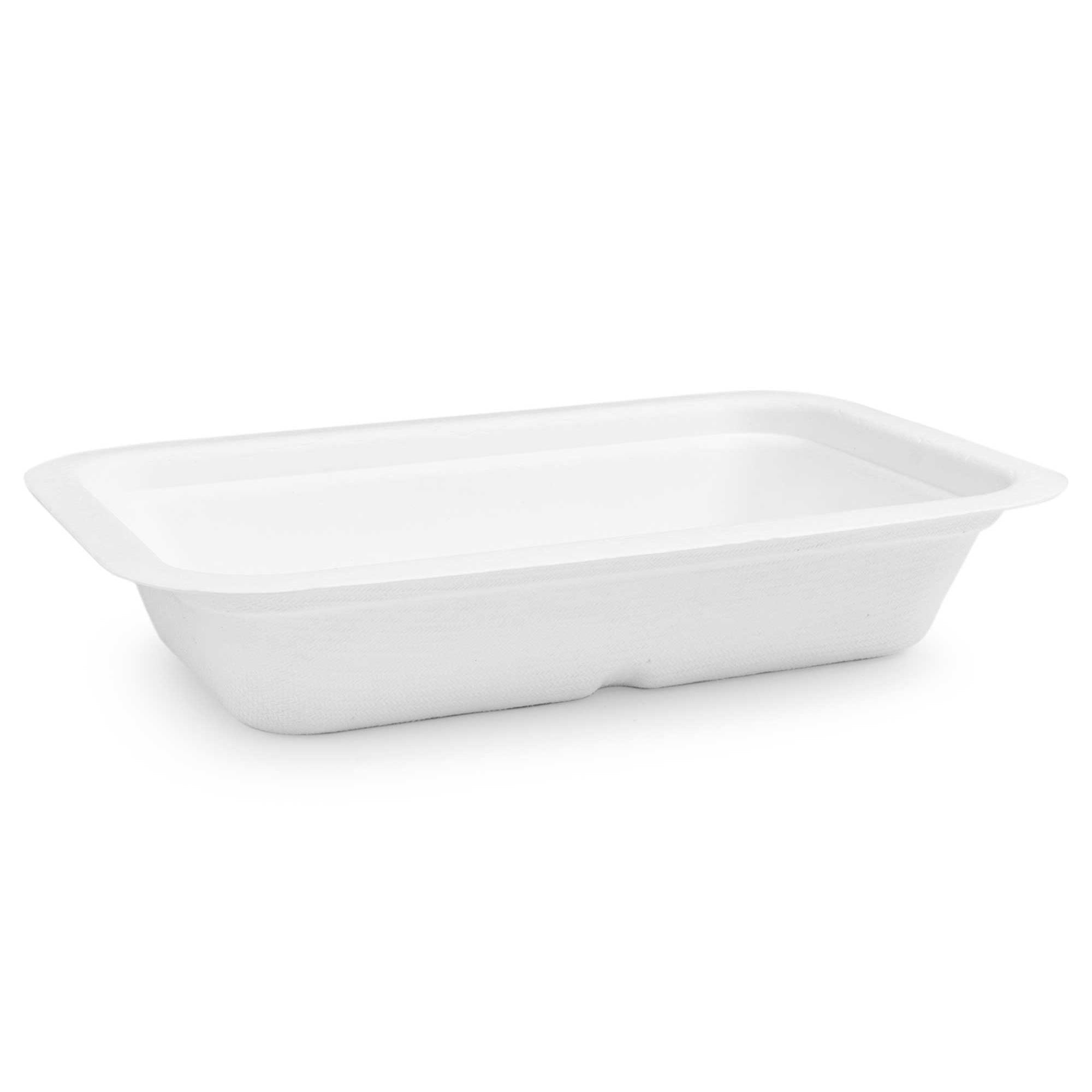 Versatile tray base for food to go. Part of Vegware's Gourmet range, size 4. Multiple lid options. Space efficient stacking....