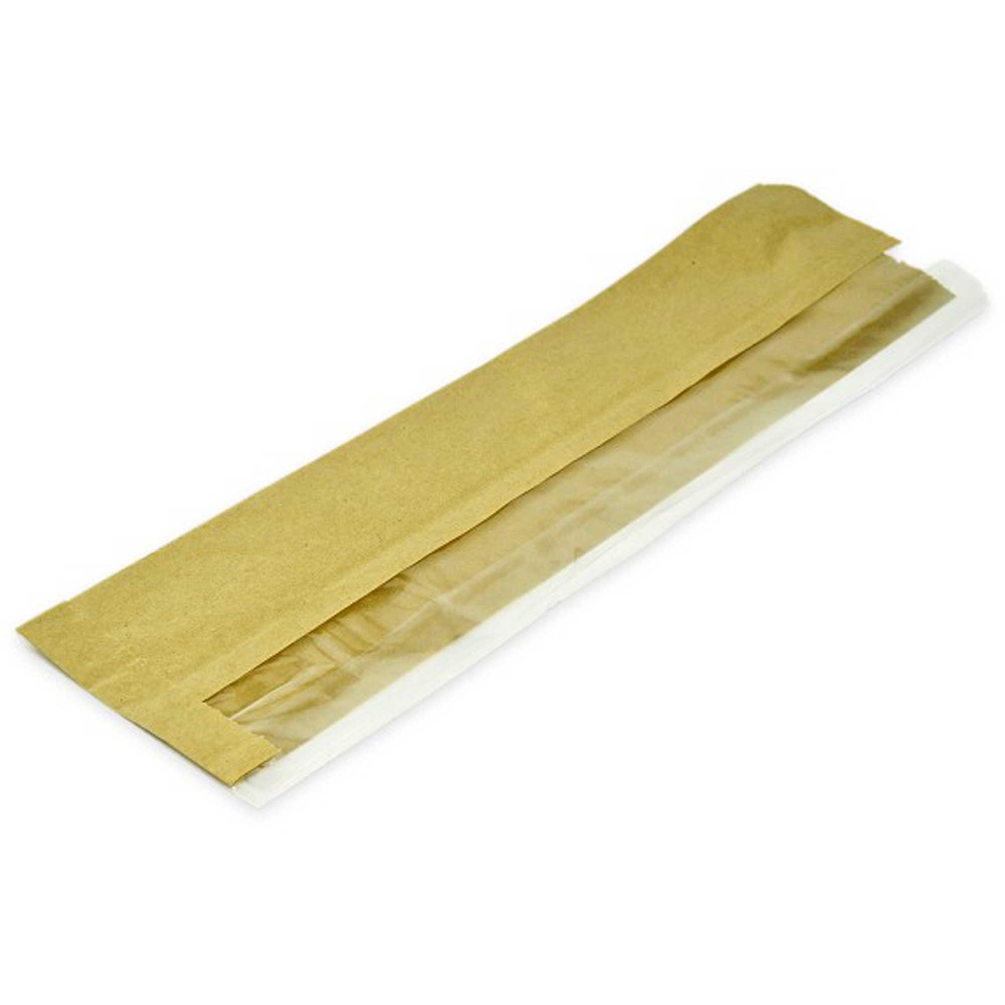 Compostable 4 x 6 x 14in Kraft PLA Side Window Baguette Bag - Case of 1000