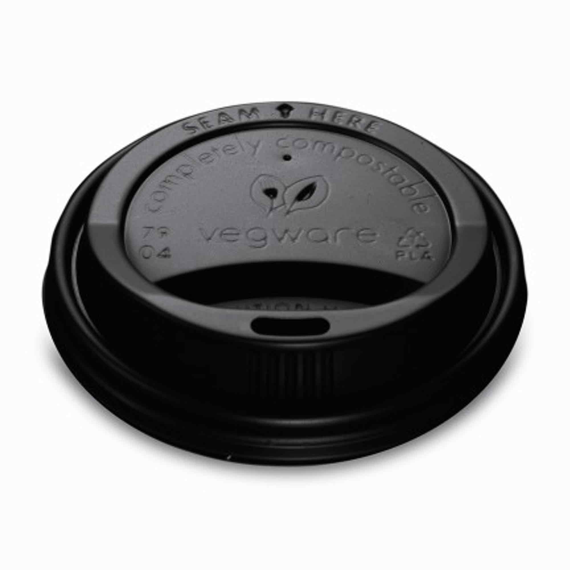 Vegware 8oz Eco Compostable CPLA Black Hot Coffee Cup Lids - Case of 1000 - 79 Series