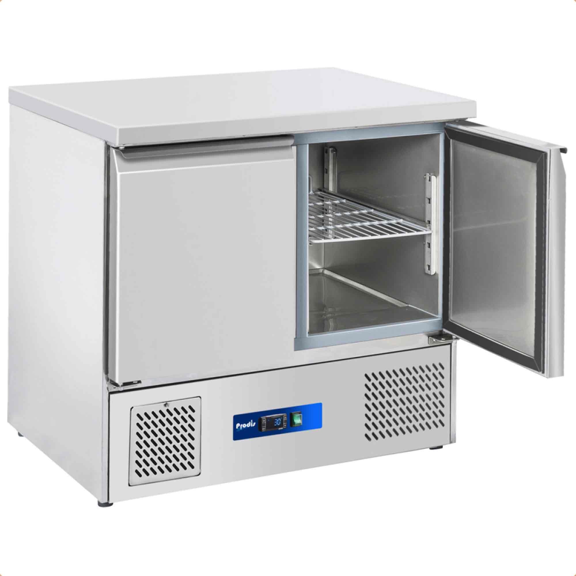 The EC-2SS by Prodis, a 2 door compact saladette counter with stainless steel work top and under mounted compressor. The...