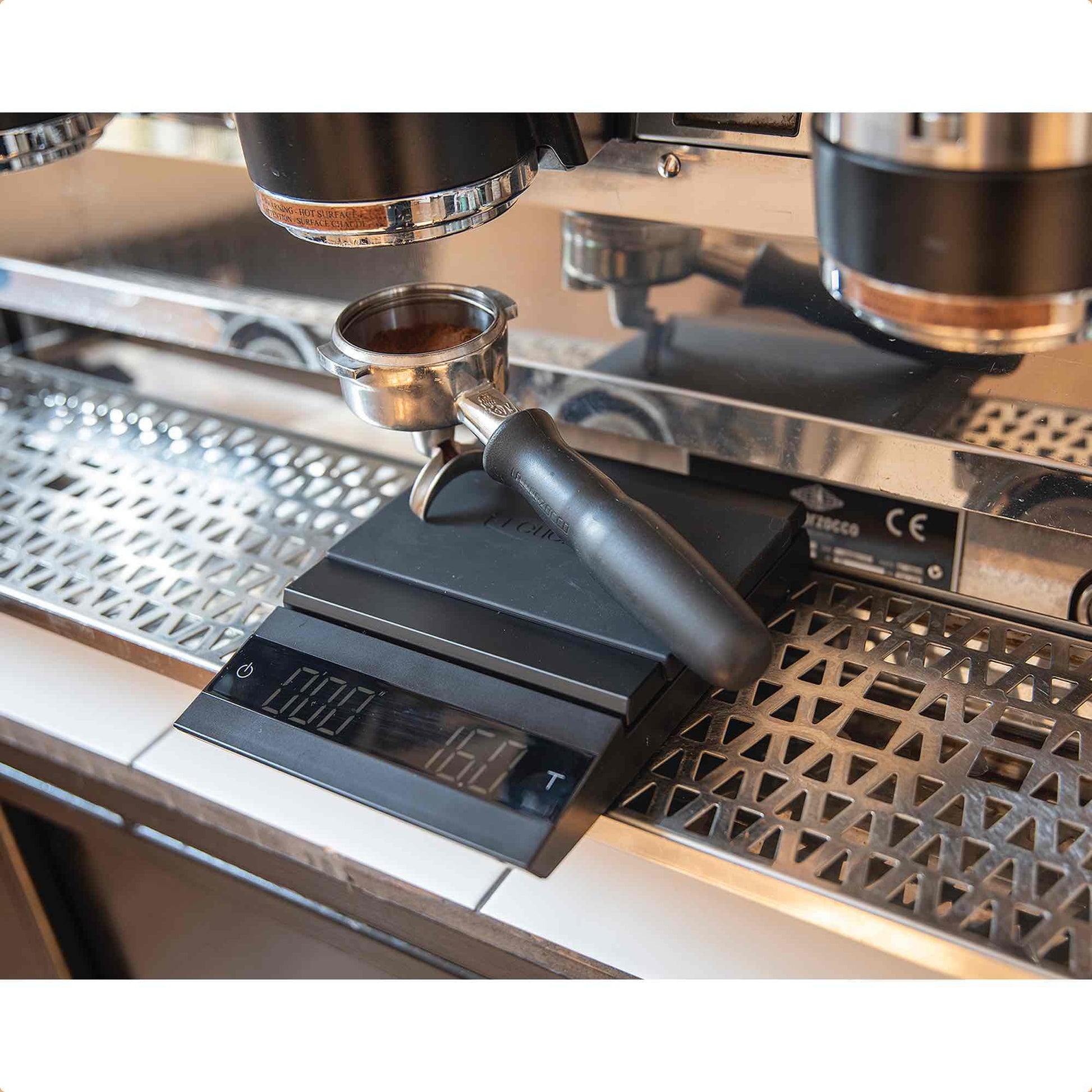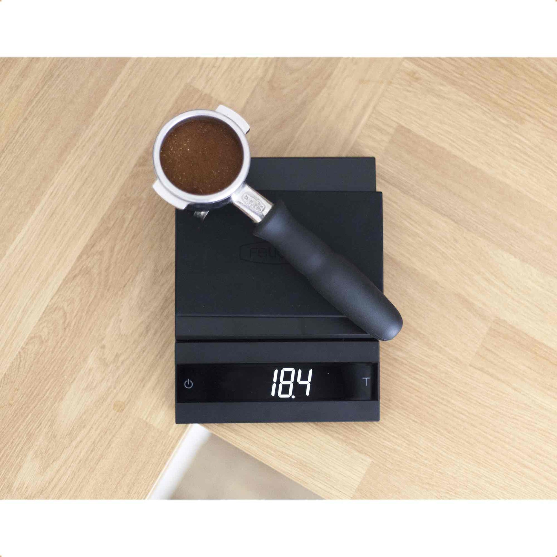 Felicita’s largest scales, Parallel, shine in a busy coffee shop environment. With a total capacity of 2kg and precision to 0.1g, the scales’ spaciousness and sturdiness means that baristas can focus on accurate and quick dosing without having to even think about it, or worry about portafilter slips and spills. Parallel’s features include auto-tare and an automatic timer, both of which are easily toggled with an intuitive touch display to make the coffee brewing ritual as effortless as possible.